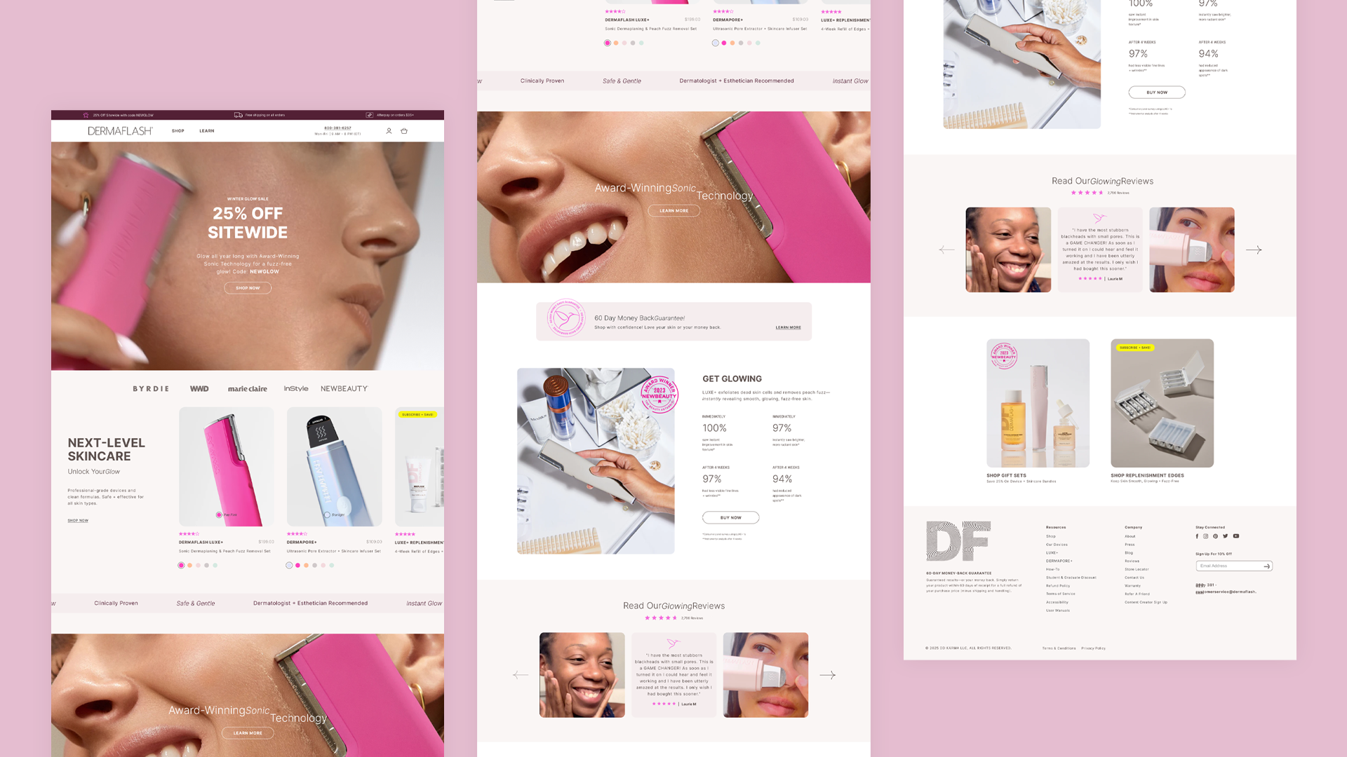 I worked with Dermaflash, a leading skincare brand, to showcase their signature dermaplaning devices in a glamorous light. This included graphic design, web design, and product photography, ensuring each visual element communicated the product’s luxurious and transformative benefits. The result was an elevated, cohesive brand presence that positioned Dermaflash as a premium solution in the beauty industry.